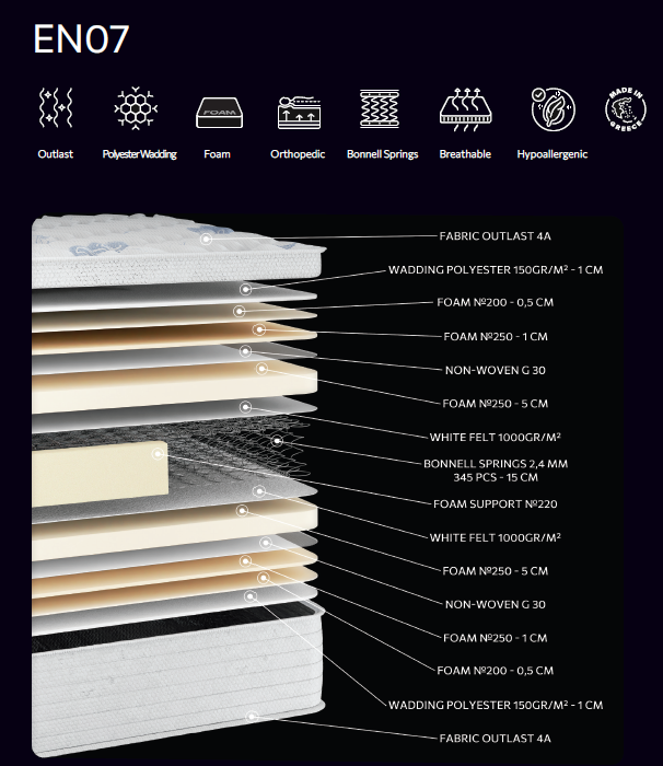 Στρώμα υψηλής σκληρότητας με ελατήρια Bonnell, σχεδιασμένο